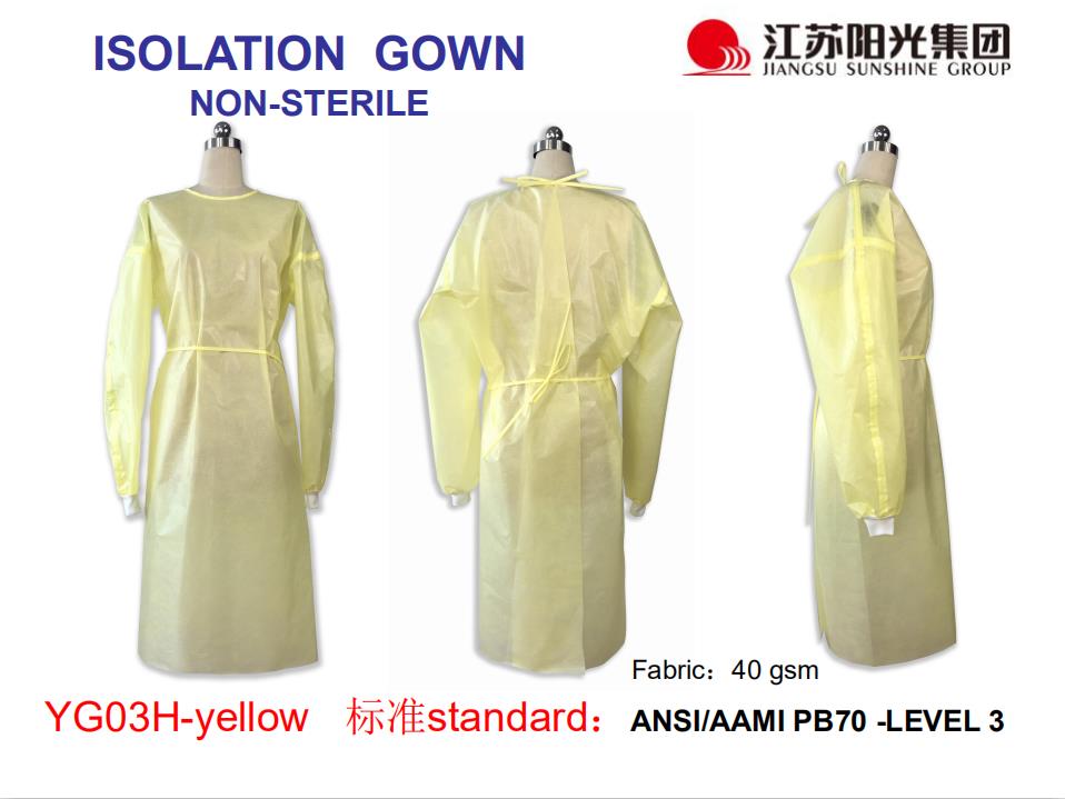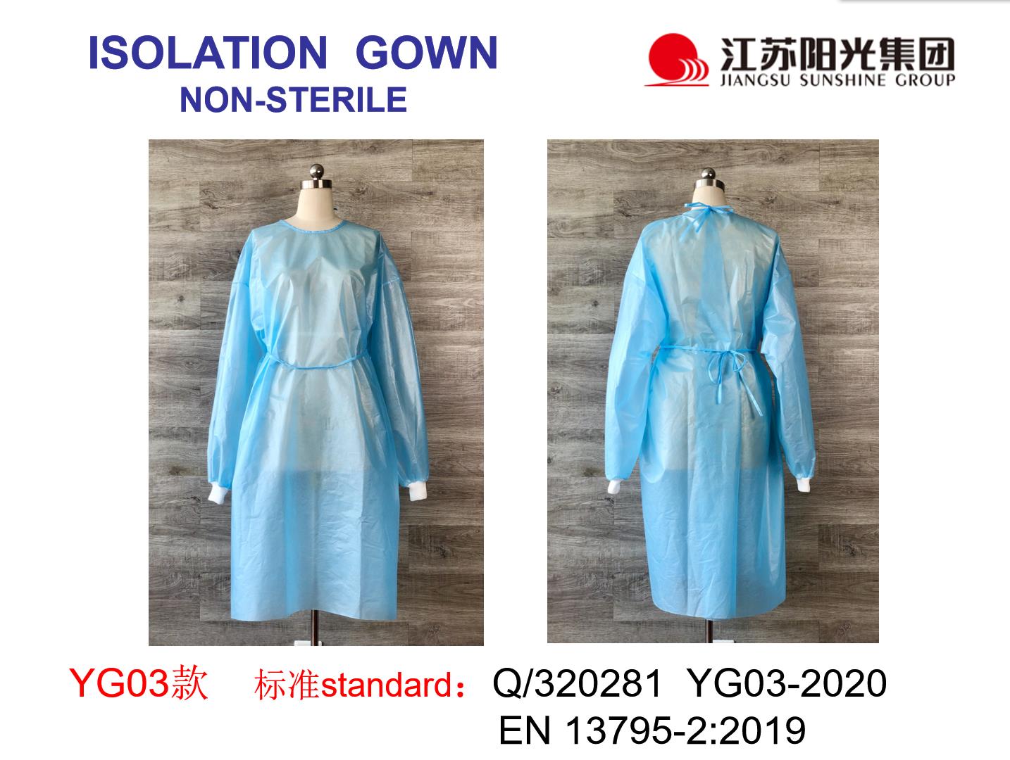 一次性隔离衣(非灭菌)适用于非医疗场合的工作人员接触具有潜在感染性人员、空气中的颗粒物等提供阻隔、防护作用。也可用于医疗机构门诊、病房、检验室等作普通隔离。用于医务人员在接触避免受到血液、体液、和其他感染性物质污染,或用于保护患者避免感染的防护用品。隔离衣是既防止医护人员被感染或污染又防止病人被感染,属双向隔离。